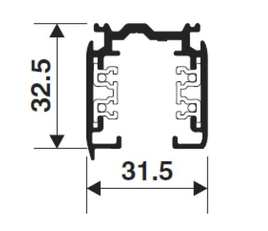 Opbouw 3fase (3F) rail van het Finse merk Nordic Aluminium. Dit type rail is het meest toegepaste merk/type 3fase rail en "de standaard" in 3F rail verlichting. 3F spots van andere merken zullen nu en in de toekomst probleemloos in deze rail werken.