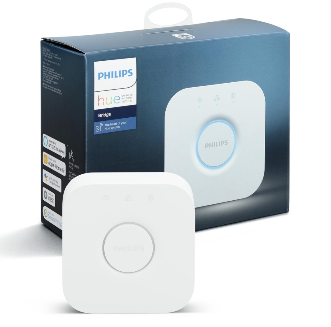 De Hue Bridge is het brein van het Philips Hue slimme verlichtingssysteem. Je kunt er tot wel vijftig lampen en accessoires mee verbinden. Steek de stekker in het stopcontact en gebruik de Hue app om routines, timers, aangepaste lichtscènes en nog veel meer in te stellen.