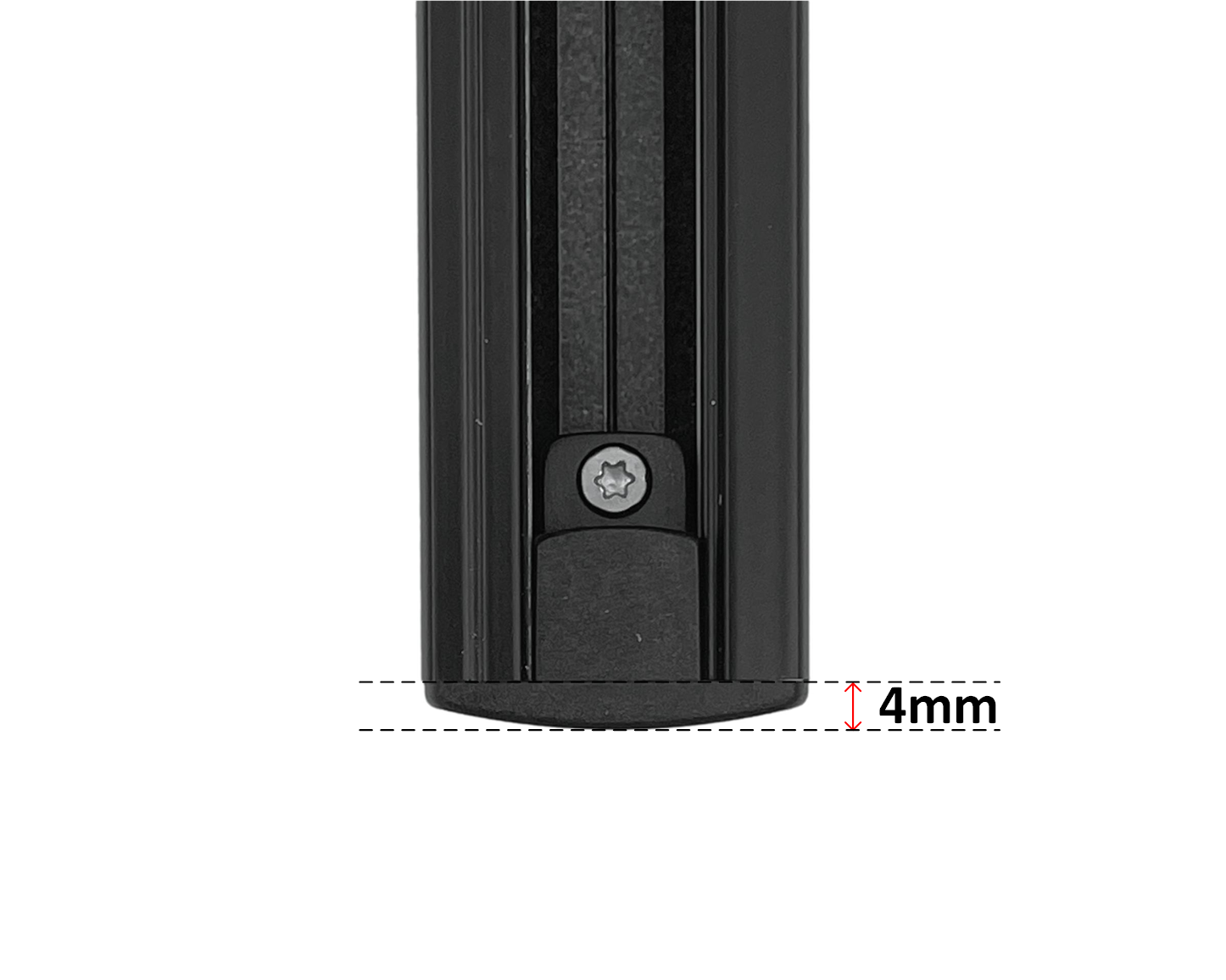 Eindkap voor de afwerking van het uiteinde Global Trac Base 1-fase rail. De eindkap kan in een open uiteinde geschoven worden en geborgd worden met een Torx T10 schroef.