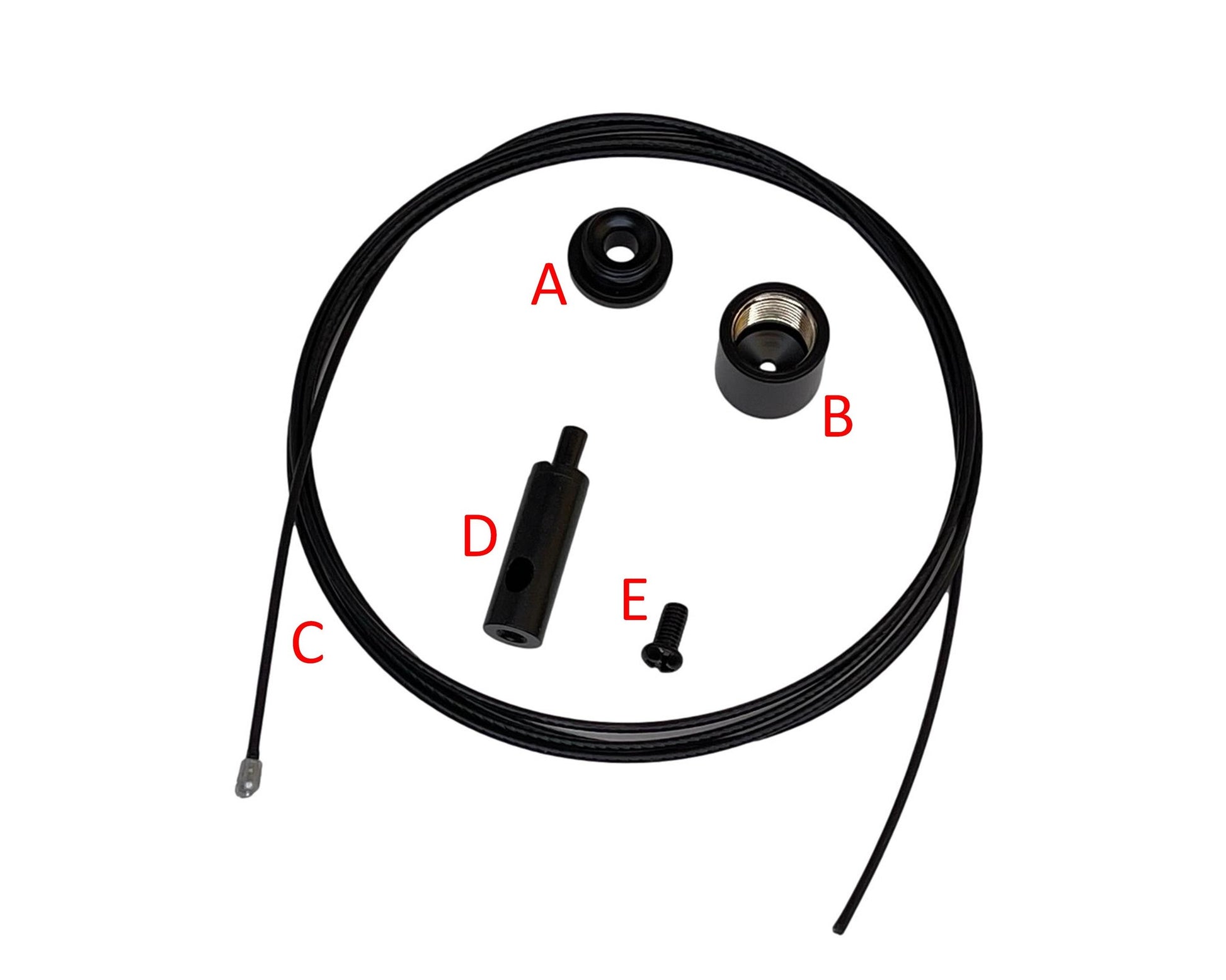 - D+E: Steller welke op de rail geschroefd wordt. Door de steller in te drukken kan de staaldraad teruggevoerd worden. De hoogte is hiermee eenvoudig af te stellen.