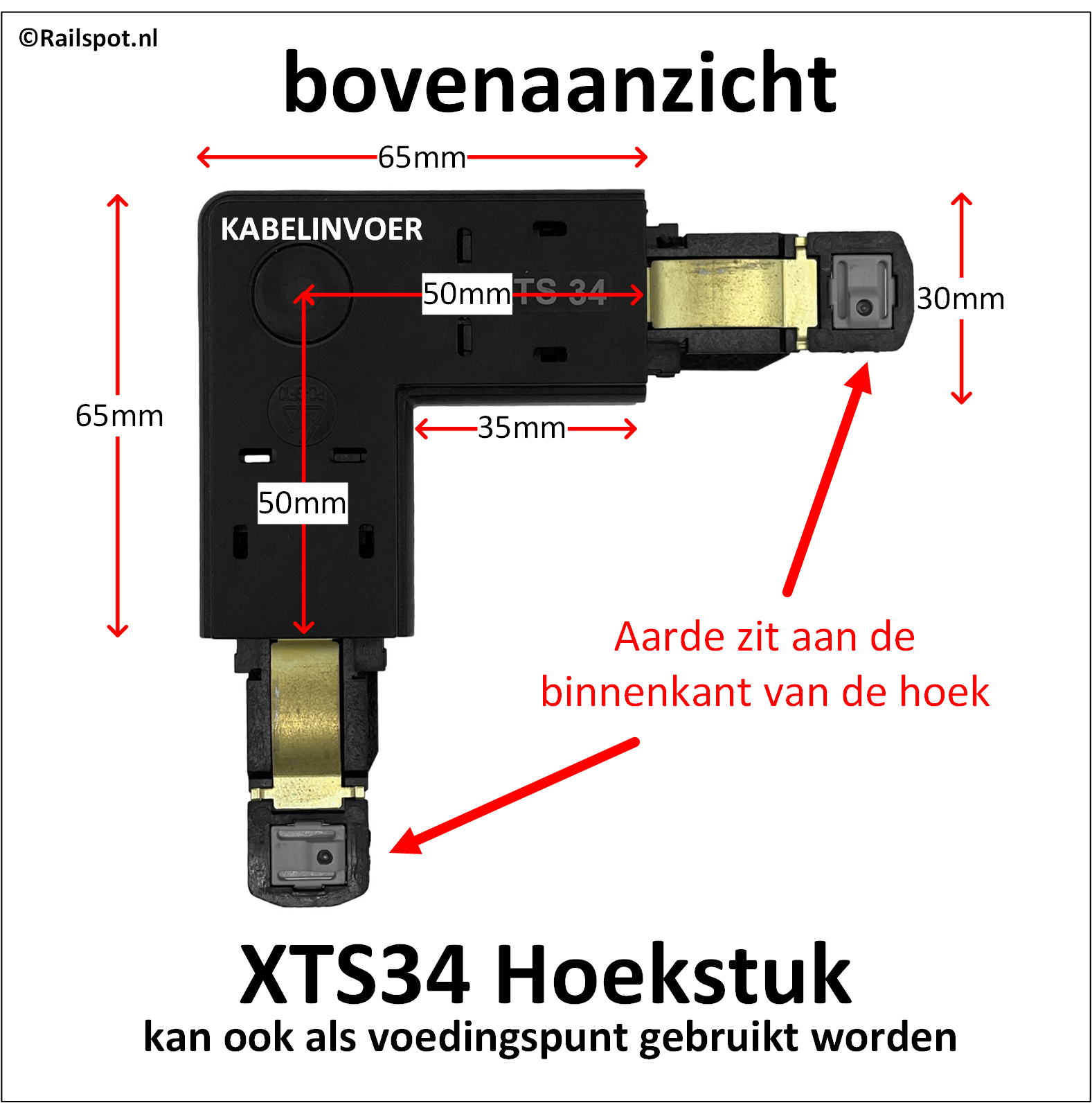 Let op, er zijn 2 verschillende hoekstukken (XTS34 XTS35). Op de afbeeldingen is het het verschil te zien. De opstaande rand van de rail komt aan de kant van de schroef. Voor een enkele hoek kunnen beide soorten gebruikt worden. Neem bij twijfel contact met ons op.