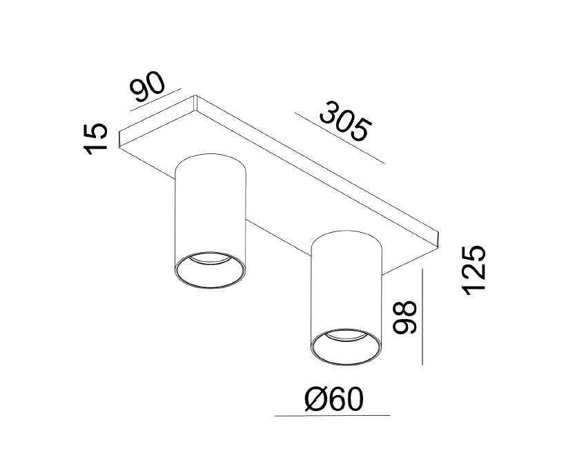 - Afmeting plafondplaat (L x B x H): 30.5cm x 9cm x 1.5cm